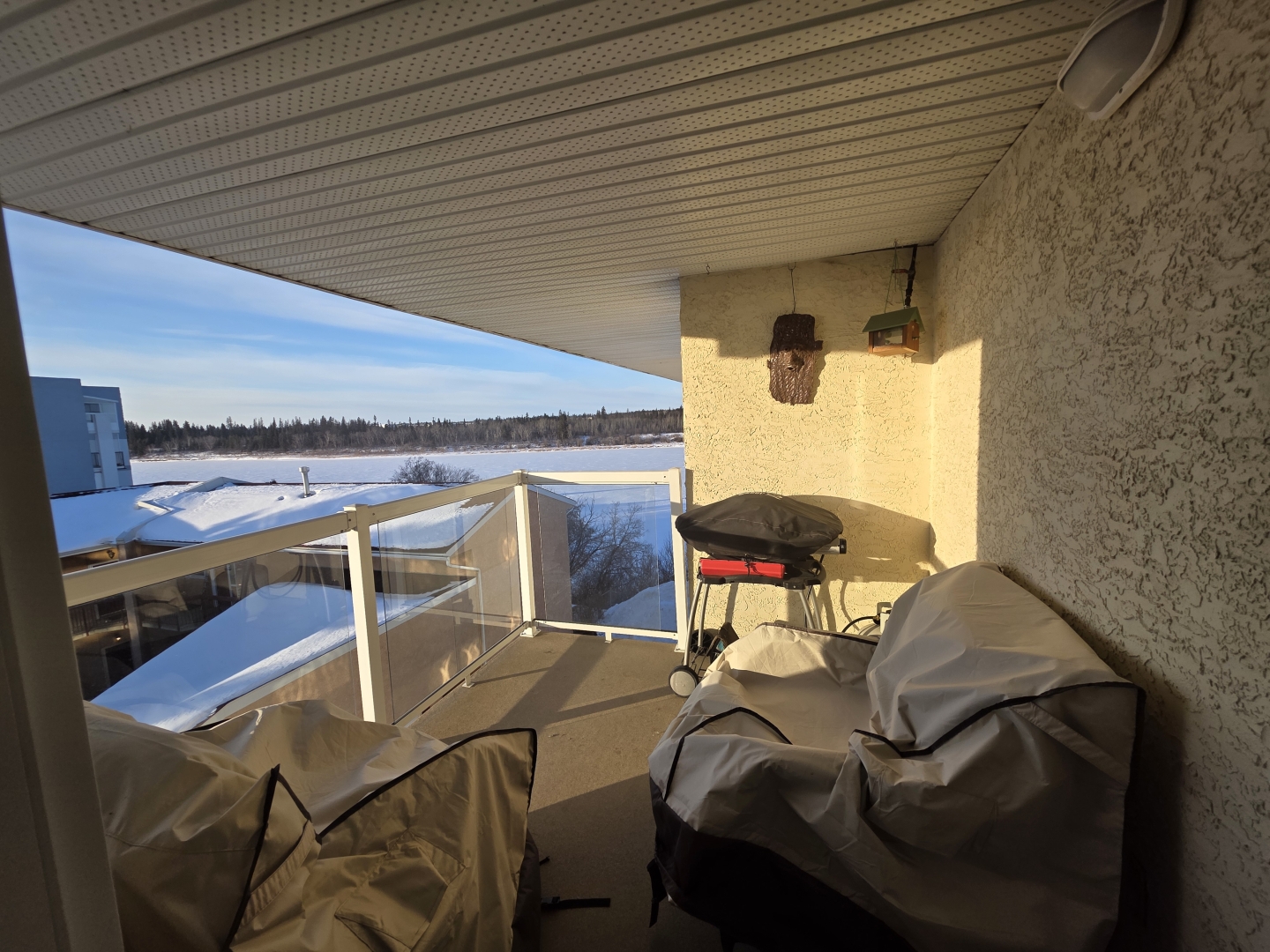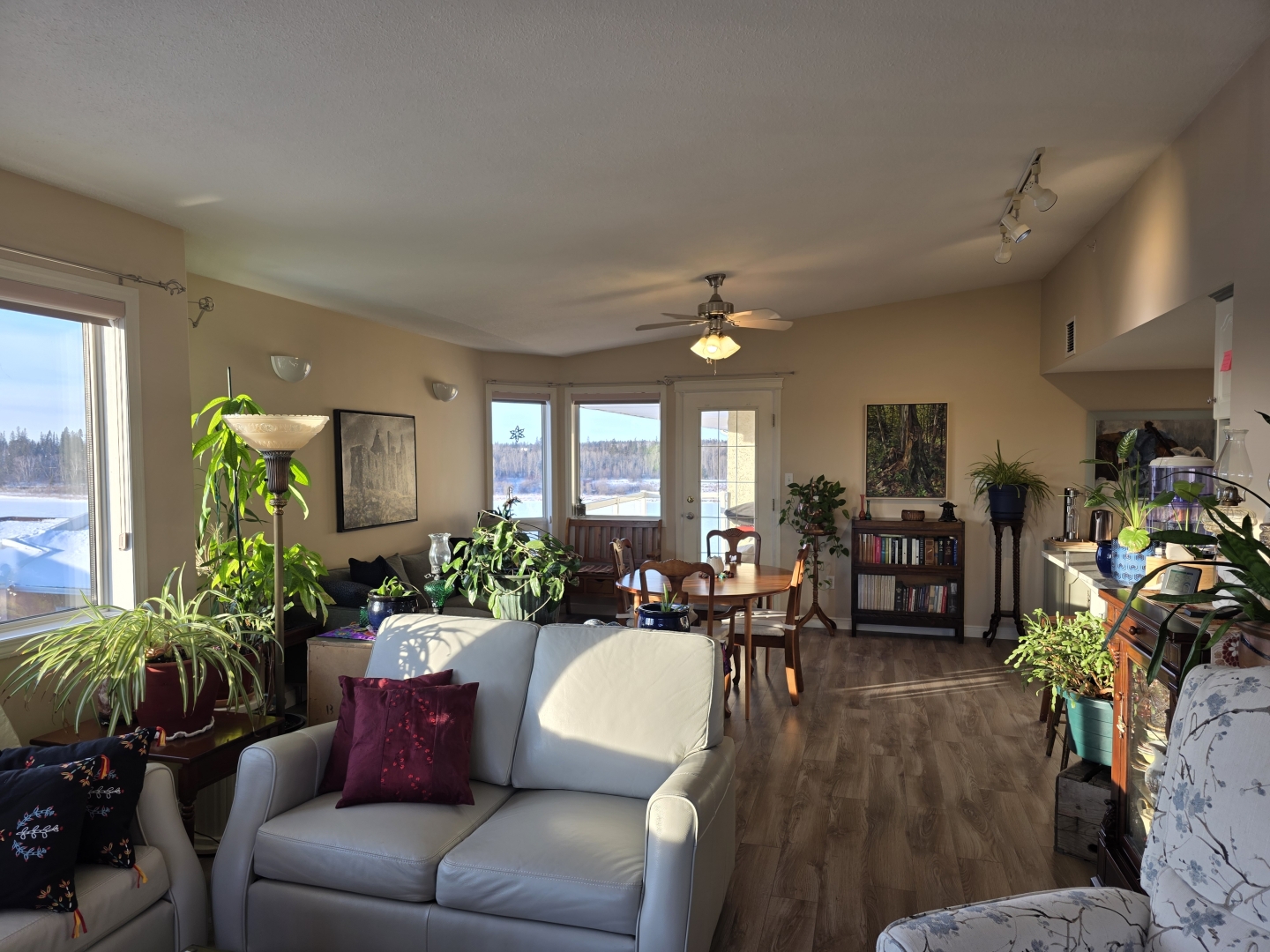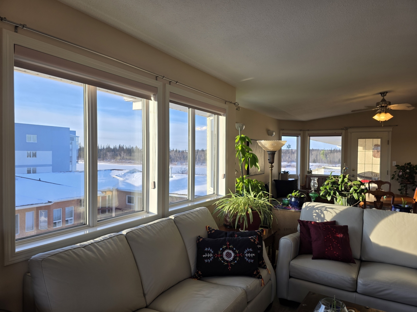 The kitchen overlooks the spacious dining area with river views, and plenty of area for entertaining. The large living room features oversized windows to the south and west providing wonderful daytime light, showcasing iconic Saskatchewan sunsets. With a gas fireplace it sets the perfect tone for cozy evenings or lazy weekends.
