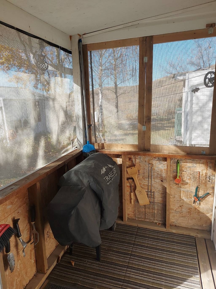 - 16 ft x 16 ft outbuilding, currently used as woodworking shop, but could be converted to a guest house. Heated with heat pump.