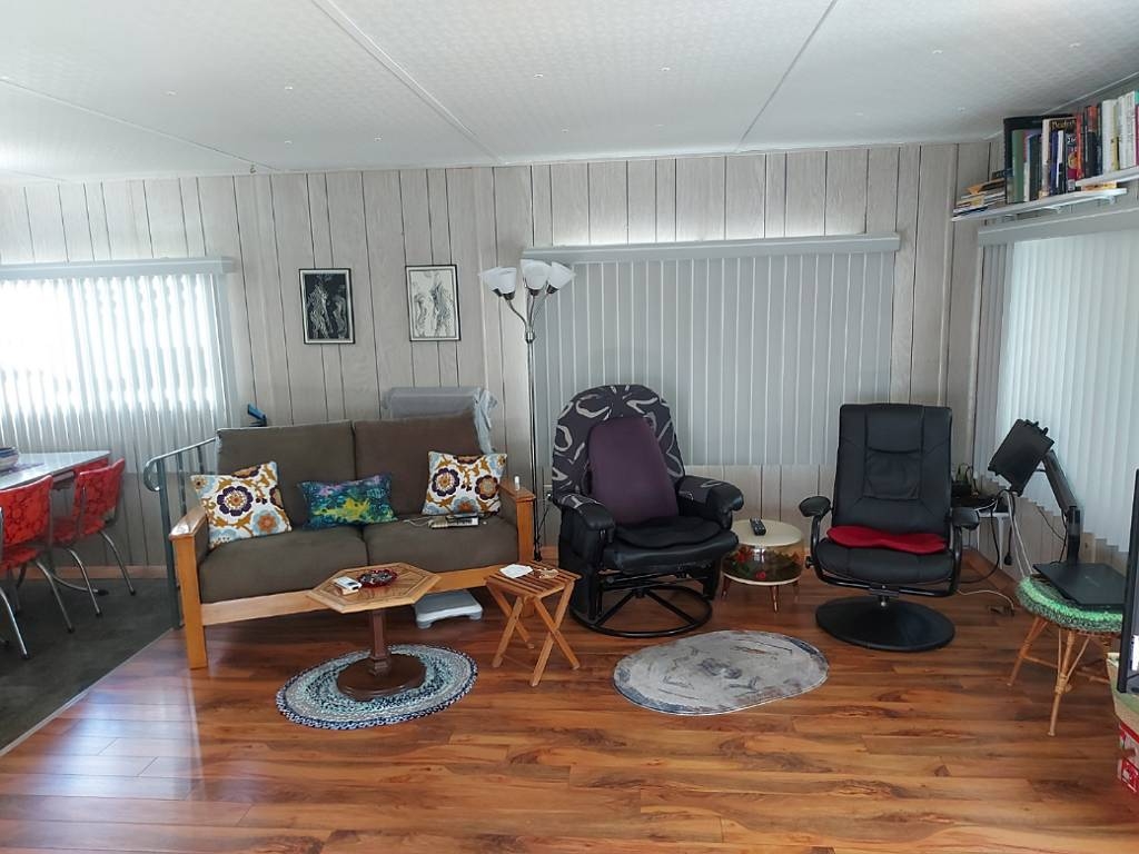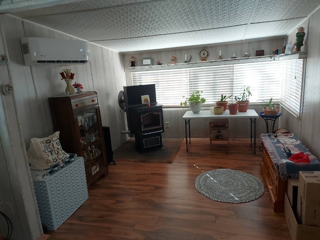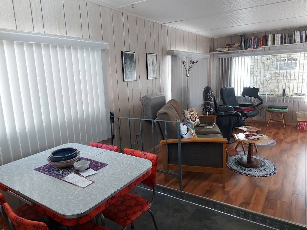 - 1968 mobile home with new metal-clad pitched roof, additions, new flooring on large leased lot (65 ft x 110 ft, 33 year term) at Lake Diefenbaker. Currently used as year-round primary residence. Heated with heat pump and pellet stove.