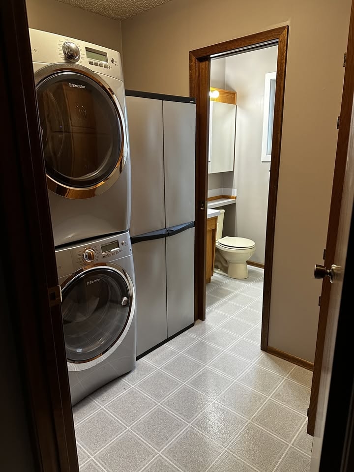 Included Appliances & Extras: Fridge, stove, built-in dishwasher, stackable washer and dryer, and window treatments—all ready for immediate move-in convenience.